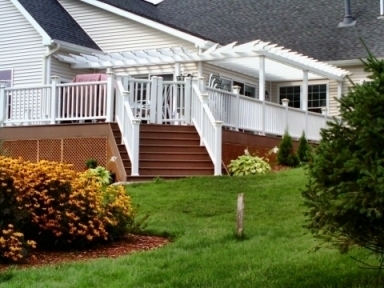 Trex Accents Decking with Artesian Safety Rails, Cedar Pergola with