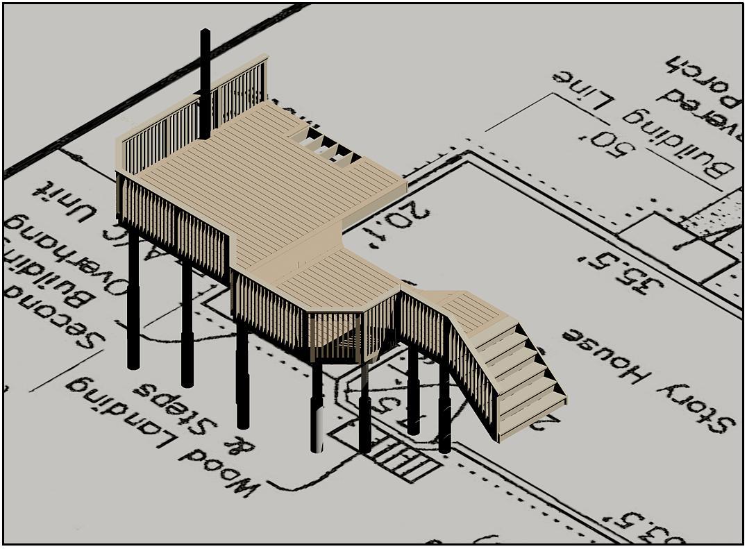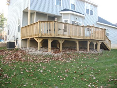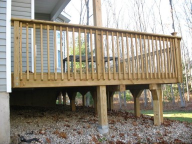 full 2 x 12 tread. 6 x 6 supporting bracketed post and beam