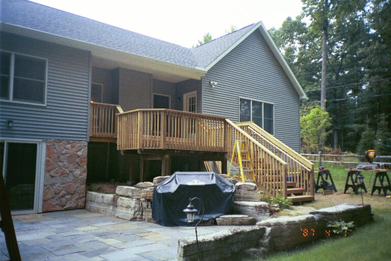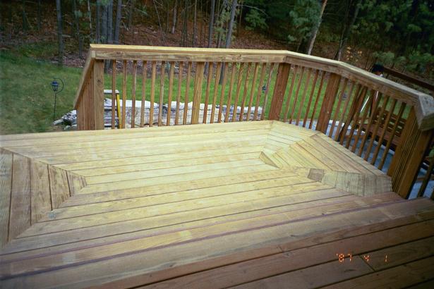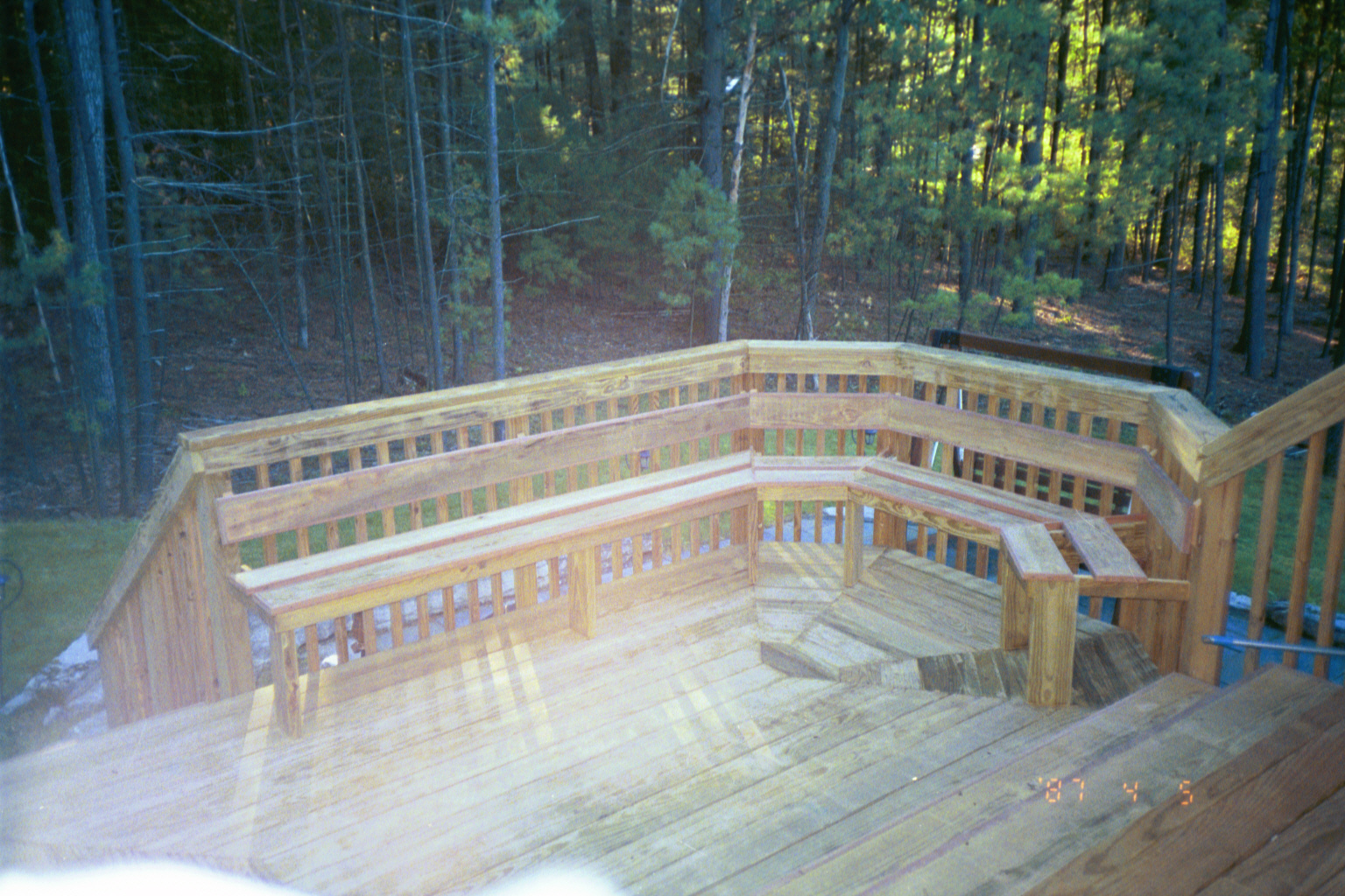 open faced stairs with a custom cut decking and traditional safety